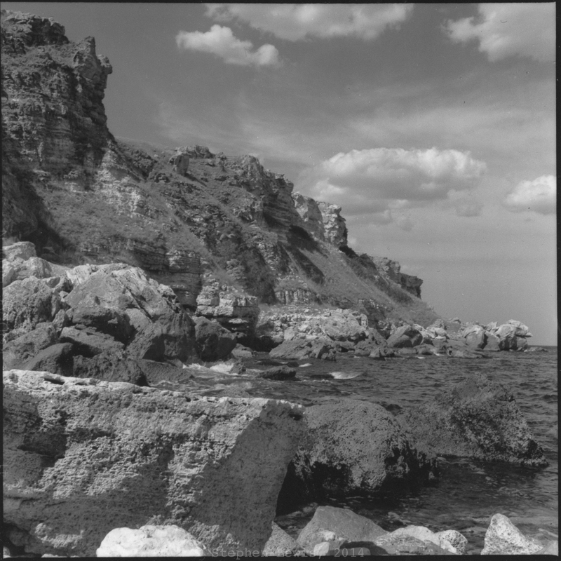 Cliffs and Sea, western coast of the Black Sea near the village of Kamen Bryag, northeast Bulgaria, late-1990s. Rolleiflex Tessar ƒ3.5, scan of print.